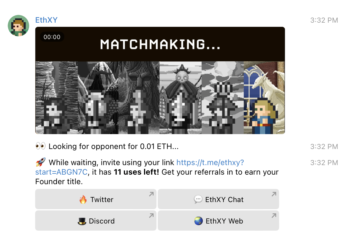 After the game, the winner's referral code is displayed, inviting any viewers of the game to join EthXY.  If a user joins using the winner's code, they will get 1 REP adding to their reputation score and +10 points.