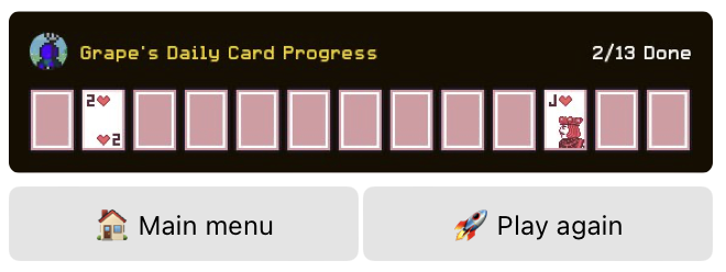 Once all 13 daily cards are collected, an epic piece of loot is rewarded, commensurate to the difficulty of completing the daily deck.